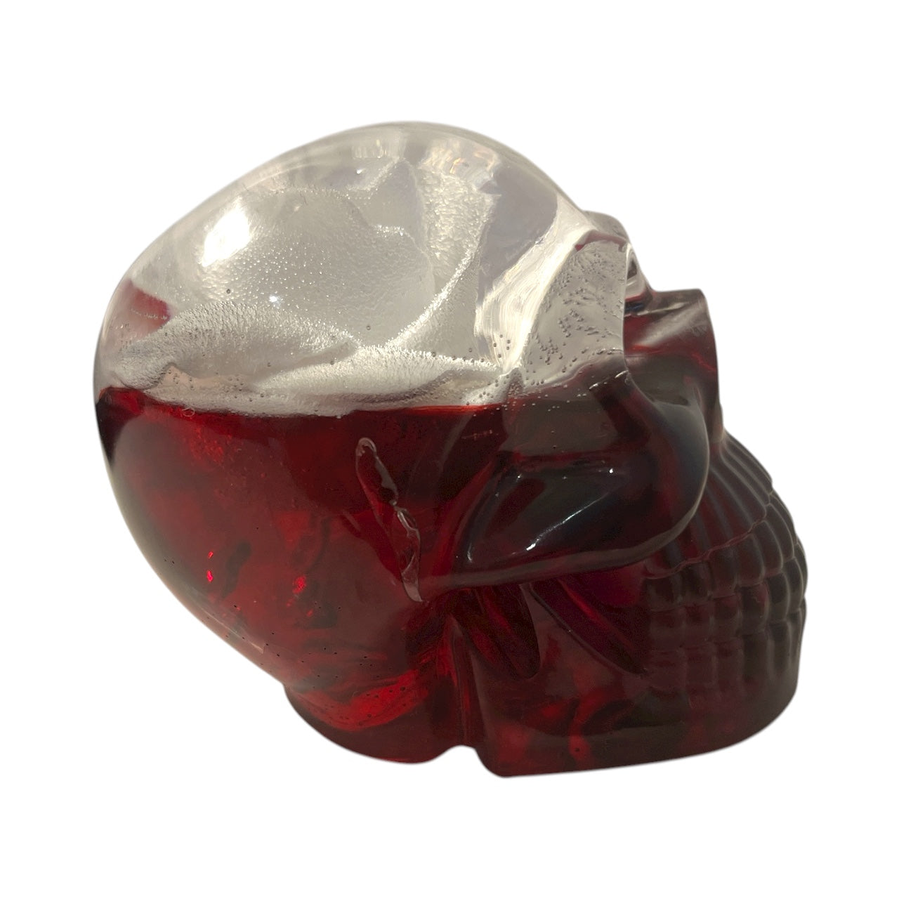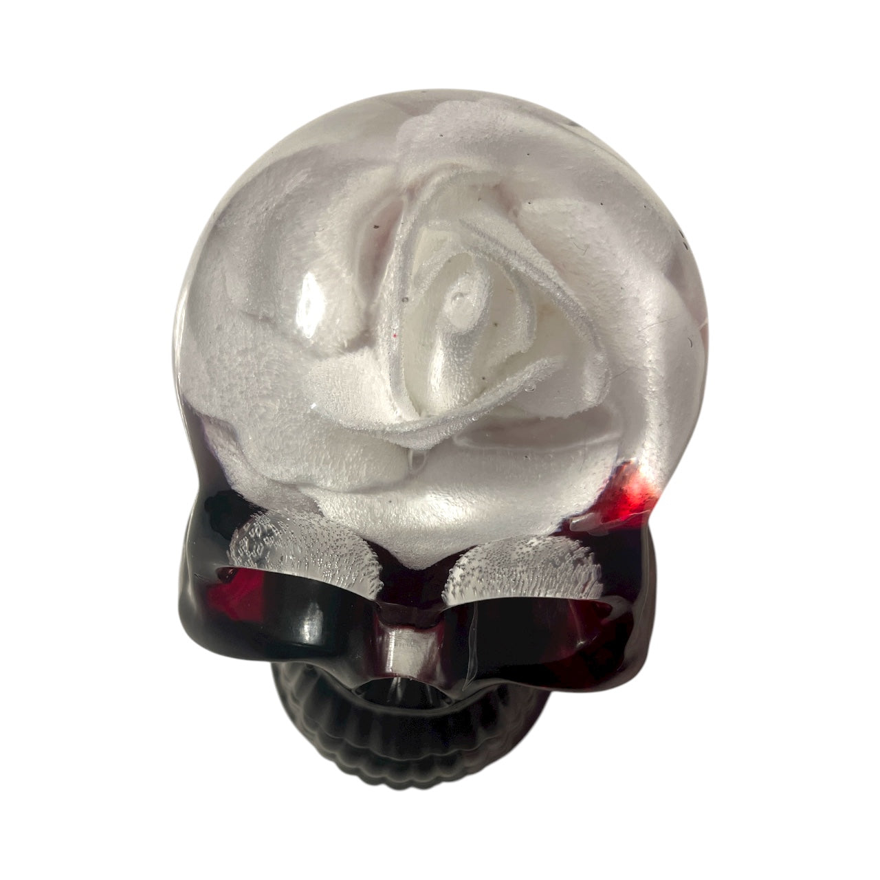 Der Todesknospe präsentiert einen kräftig roten Totenkopf, in dessen Innerem eine weiße Rose klar in Harz eingegossen ist. Dieses einzigartige Design vereint leidenschaftliche Intensität mit zerbrechlicher Reinheit und spricht alle an, die mutig ihre Individualität zeigen wollen.