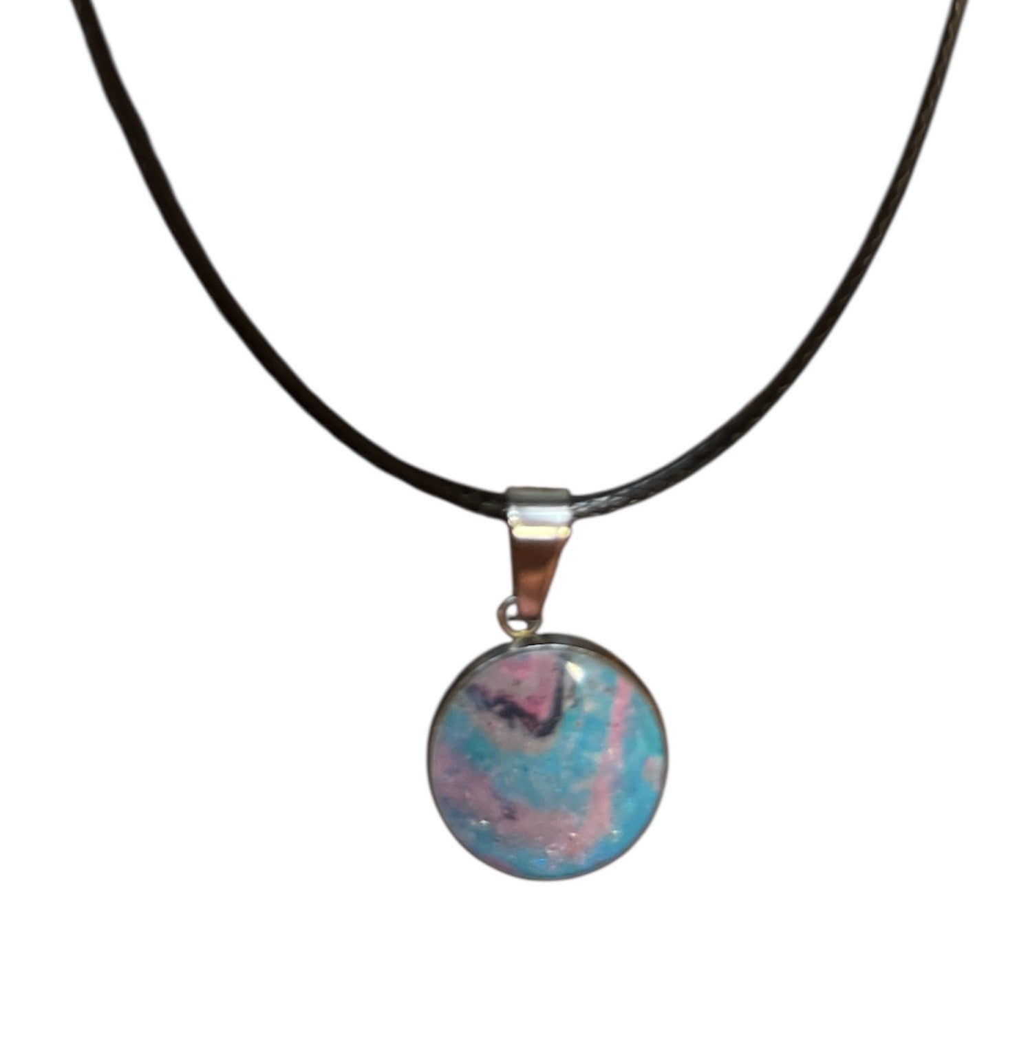 Diese präzisionsgefertigte 14 mm Edelstahl-Lünette zeichnet sich durch ein komplexes Blau-Rosa-Muster aus, das in hochwertigem Epoxidharz konserviert wurde. Die Halskette kombiniert metallische Beständigkeit mit kunstvoller Farbkomposition für langanhaltende Ästhetik und Tragbarkeit.