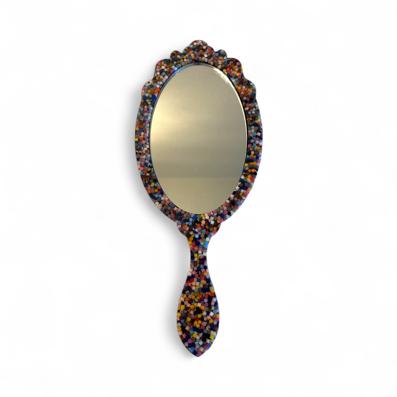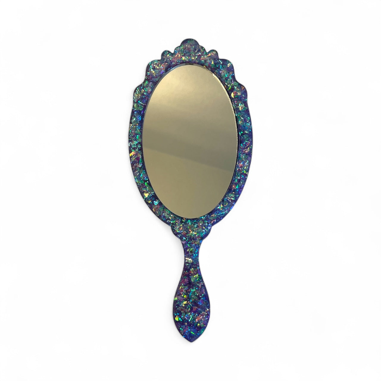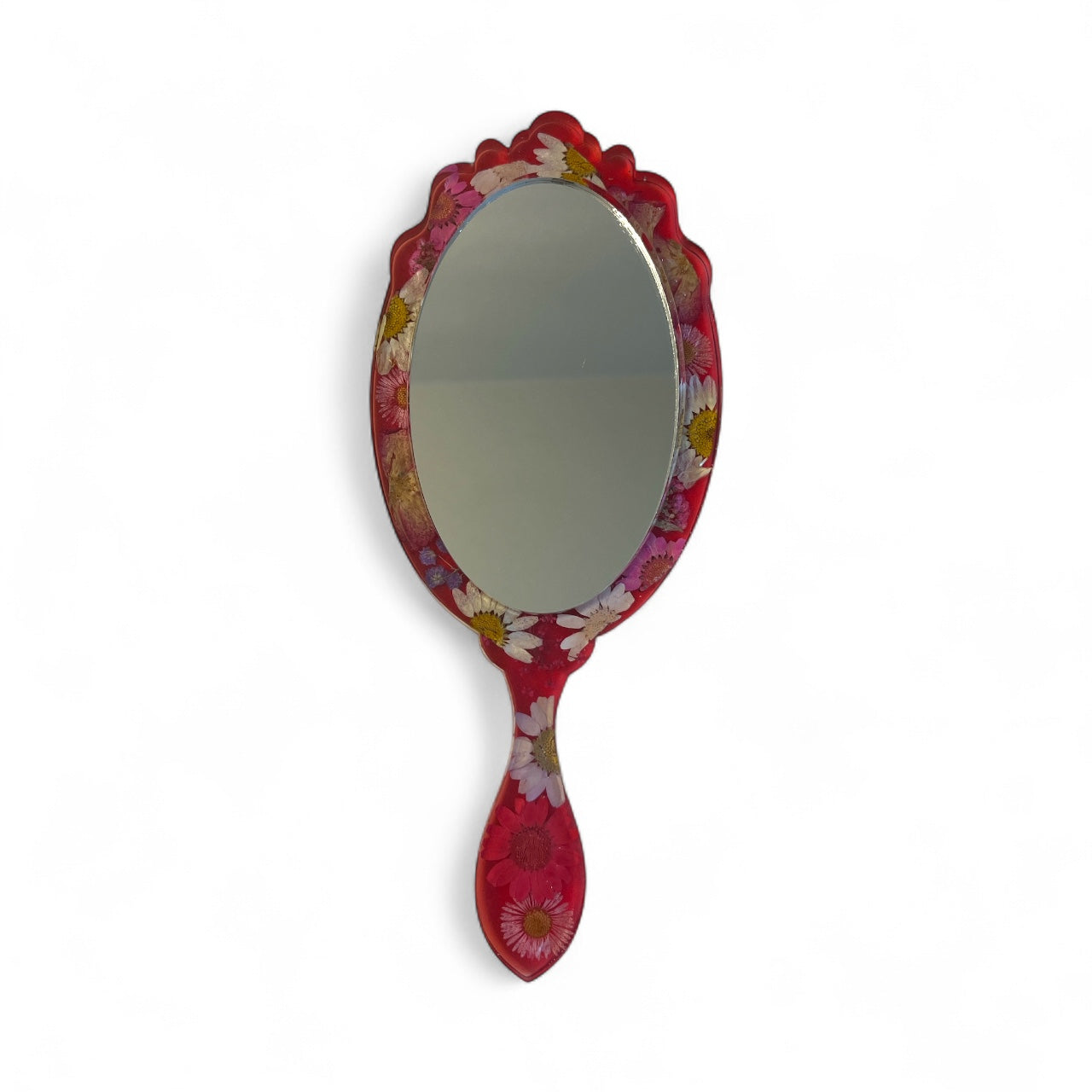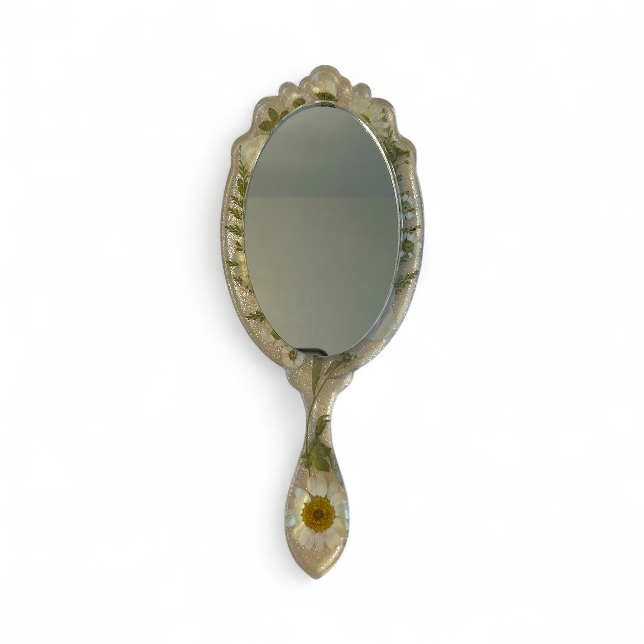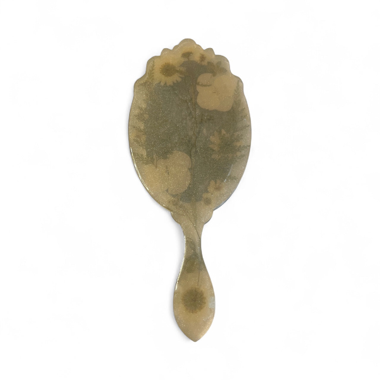 Entdecke meinen eleganten Handspiegel, individuell gestaltet nach Deinen Wünschen. Ob einfarbig oder mehrfarbig, mit oder ohne getrocknete Blumen, mit feinem Blattgold oder Blattsilber – jedes Stück ist ein Unikat. Die klaren Linien und edlen Details verleihen Ihrem Spiegel einen zeitlosen Charme, der in jedem Ambiente für Stil und Raffinesse sorgt. Perfekt, um Schönheit und Kunst in Ihrem Alltag zu verbinden.