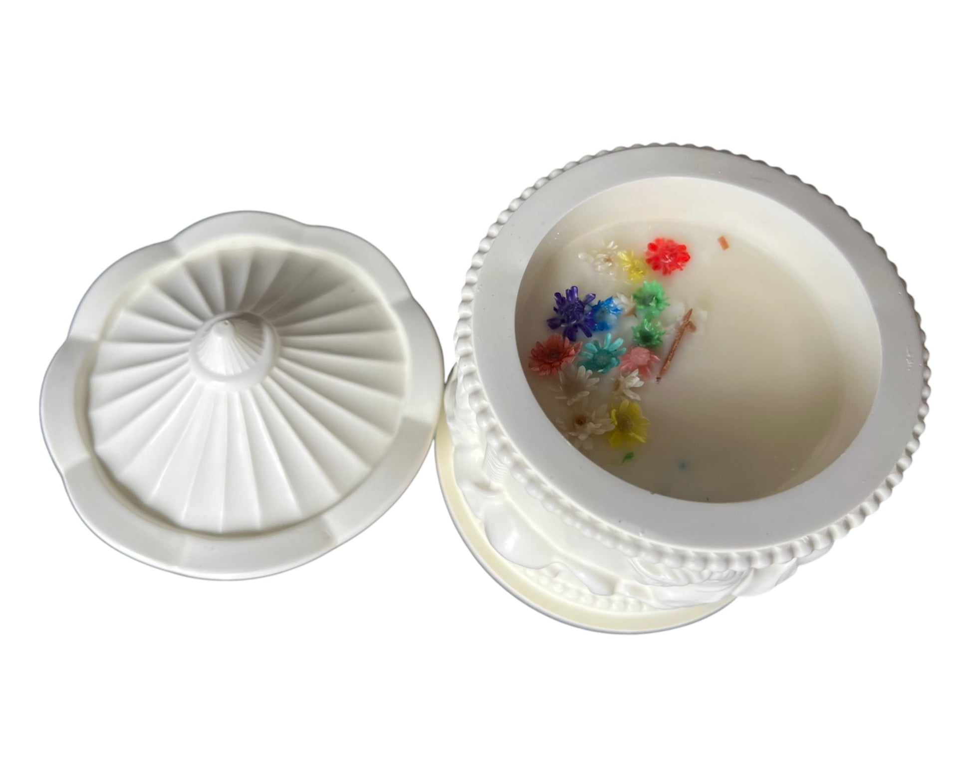 Dieses schöne Stück aus Keraflott mit Kerzenwachs ist leider eine B-Ware. An sich ist daran nichts defekt. Die Kerze ist auch brennfähig. Nur leider ist die Versiegelung nicht die richtige gewesen. Sie hat sich nach geraumer Zeit leicht vergilbt.
