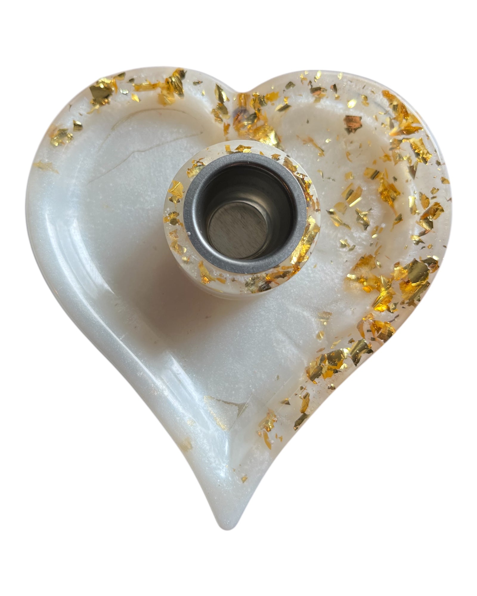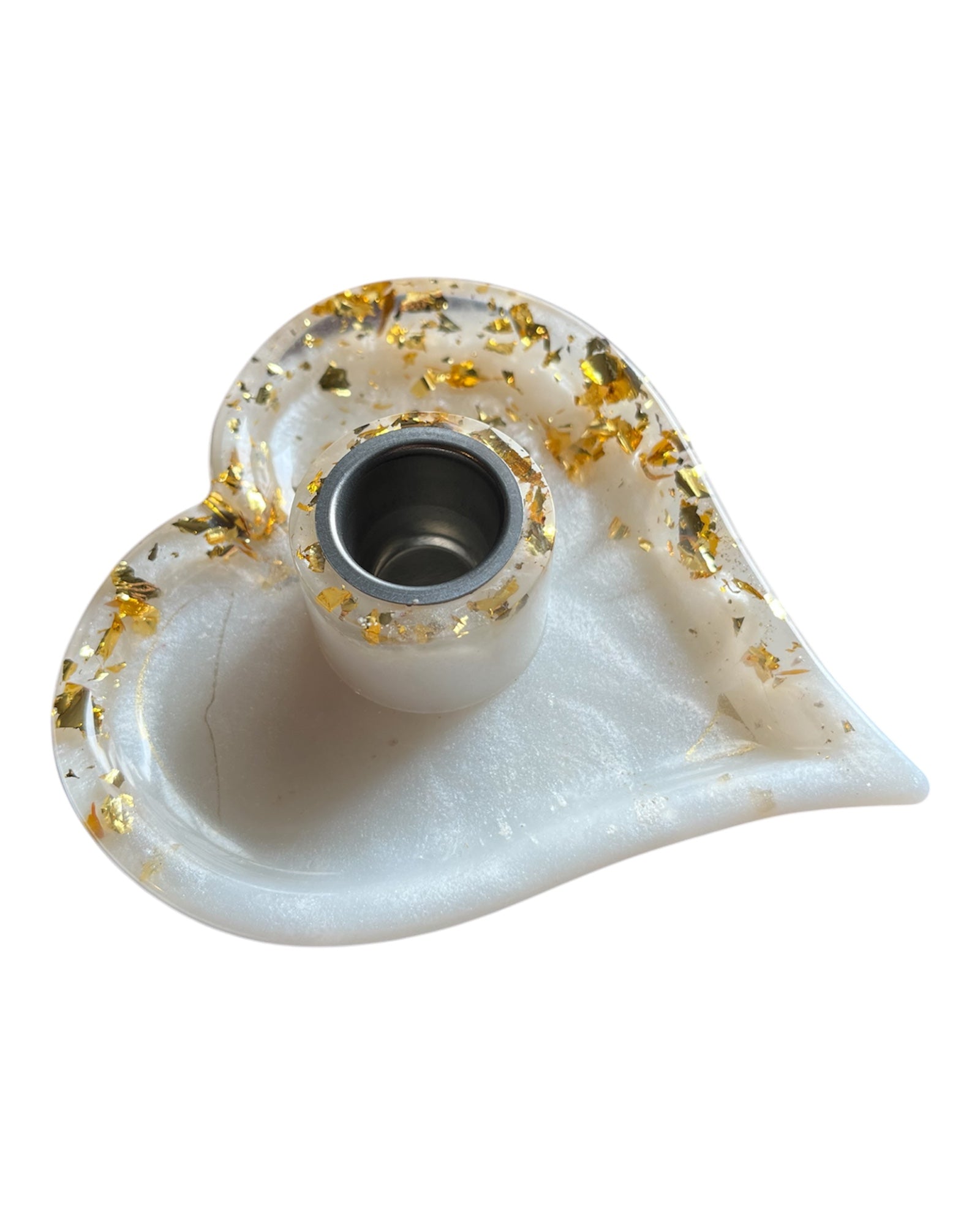 Handgemachter Kerzenhalter aus Resin. Die Grundfarbe des Halter´s ist weiß/gold mit Metallicgold und Blattgold. Für Stabkerzen geeignet.