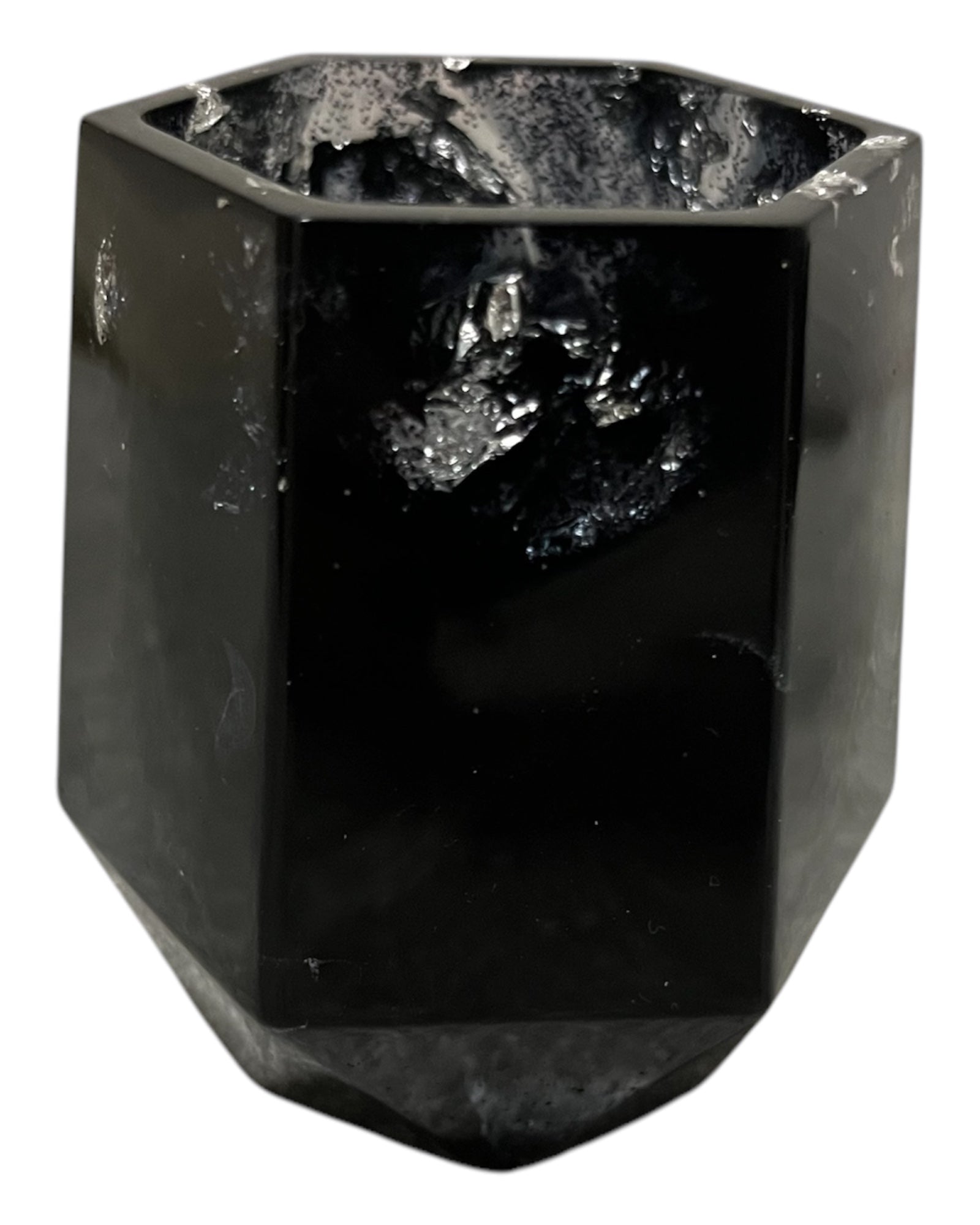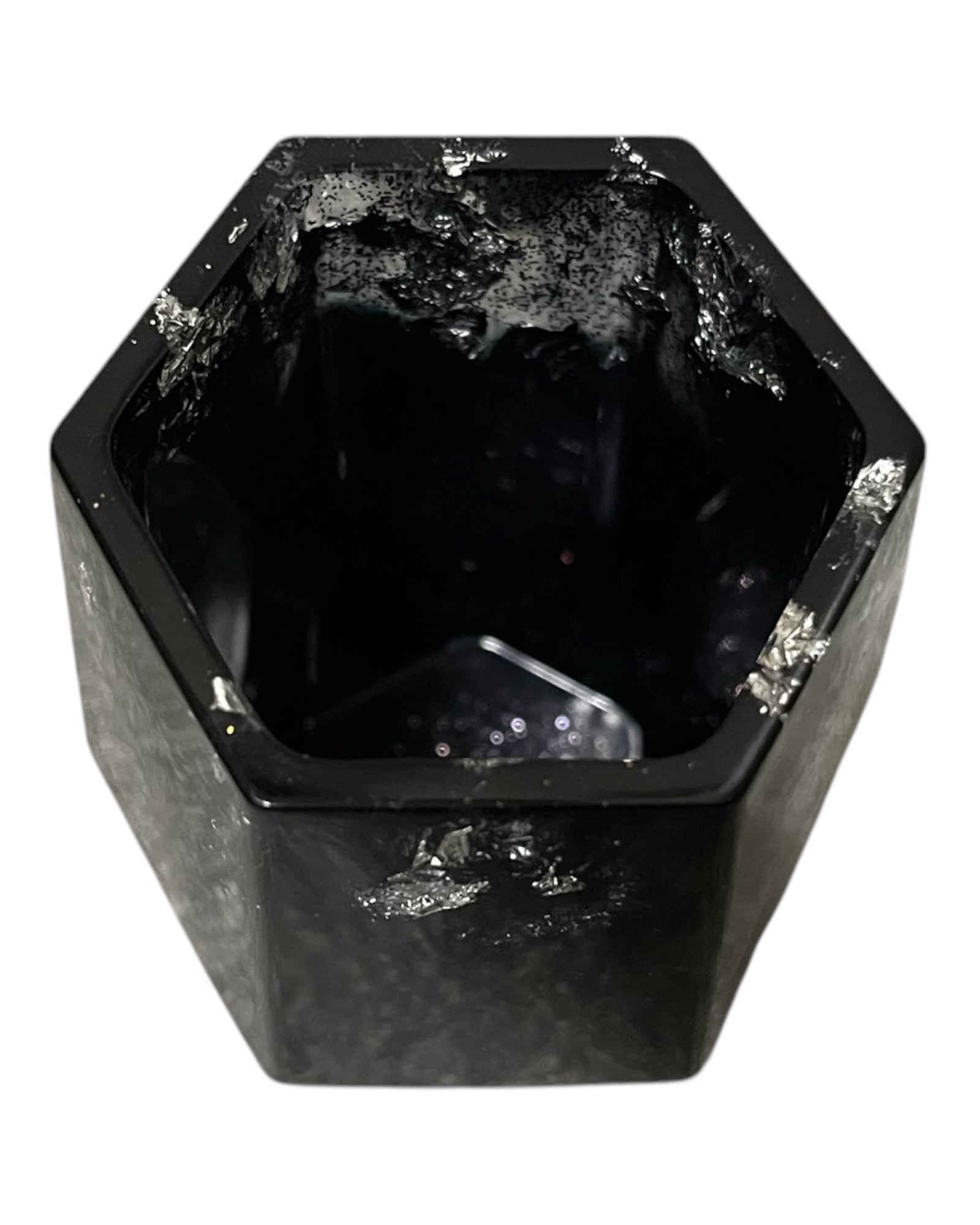 Kleine Becher aus Resin. Geeignet für Wattestäbchen, Zahnputzbecher usw. Die Farben sind aus schwarz/metallicsilber und Blattsilber