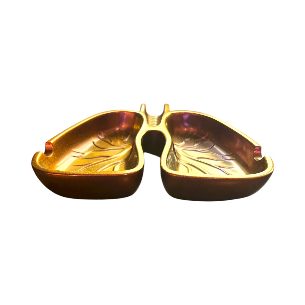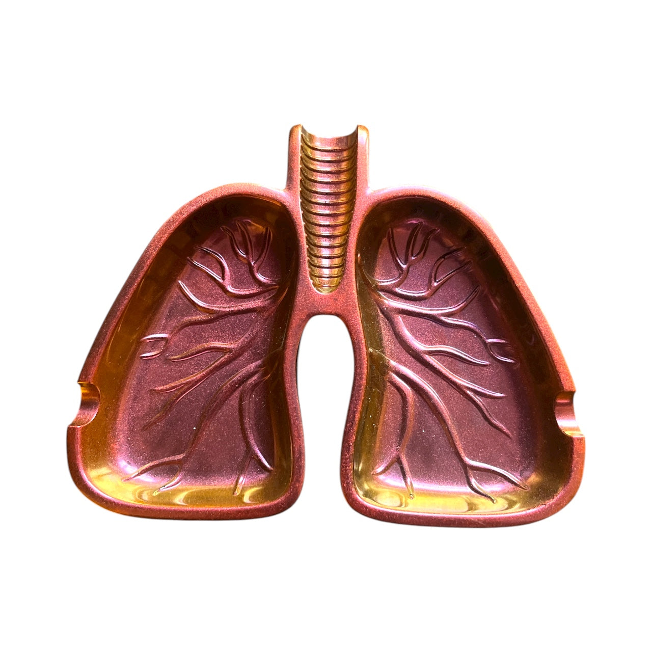 Dieser Aschenbecher in auffälliger Lungenform überzeugt mit einem holographischen Farbdesign in Rot und Grün, das von einem goldenen Schimmer durchzogen ist. Er zieht alle Blicke auf sich und bringt eine außergewöhnliche, lebendige Atmosphäre in jeden Raum. Perfekt für alle, die mutig auffallen und ihren Stil mit einem unkonventionellen Accessoire unterstreichen möchten.