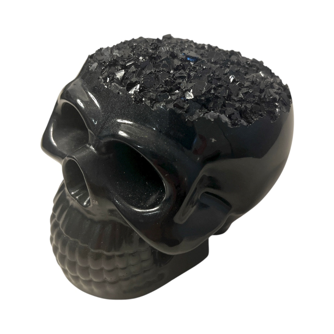 Der Nachtkristall zeigt einen tiefschwarzen Totenkopf, dessen Schädel mit einem faszinierenden Kristalleffekt veredelt ist. Dieses Design zieht alle Blicke auf sich und verkörpert eine kühne Mischung aus Dunkelheit und funkelnder Eleganz – perfekt für alle, die mit Stil auffallen und ihre dunkle Seite mutig zeigen wollen.