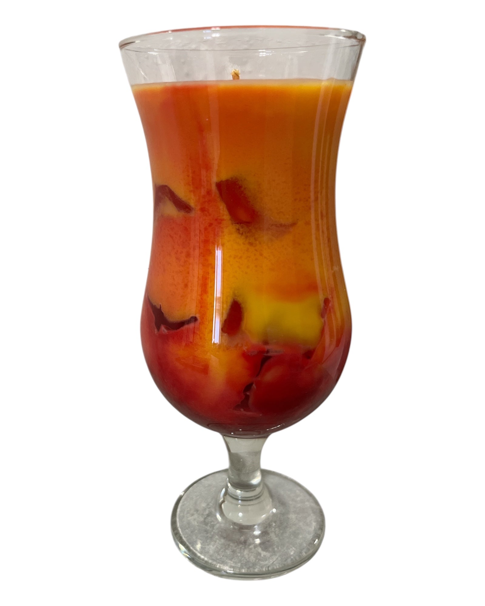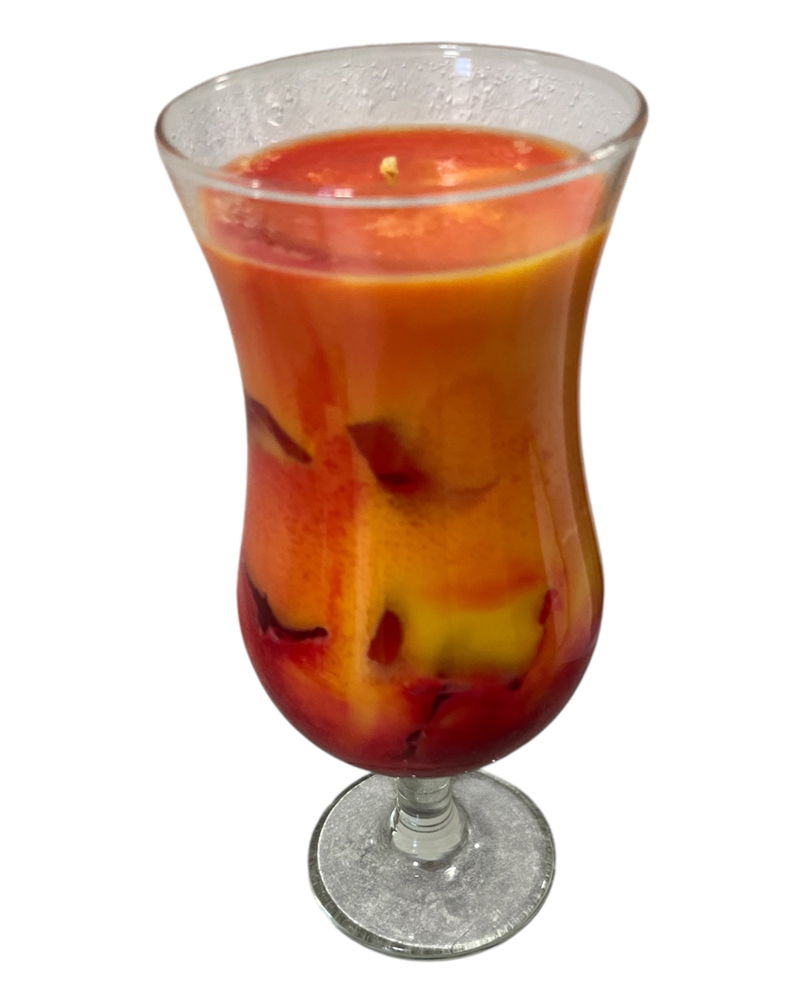 Diese Kerze im Cocktailglas kombiniert rotes und gelbes Wachs aus Shea- und Gelwachs und erinnert optisch an den beliebten Cocktail „Sex on the Beach“. Mit einem erfrischenden Duftmix aus Limone und Erdbeere bringt sie sommerliche Leichtigkeit und stilvolle Eleganz in jeden Raum.